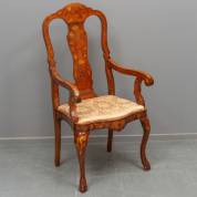 Iepen armstoel met open rugleuning voorzien van florale marqueterie, de gele bekleding met floraal decor, 19e eeuw -herstellingen, strak in de lak-, 118 × 60 × 49 cm