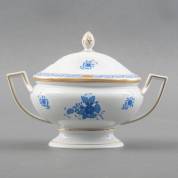 Ovale porseleinen bedekte terrine met Apponyi blauw decor, uitvoering Herend, 18 × 26 cm