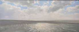 Janhendrik Dolsma (1950), gezicht op de Waddenzee, olieverf op paneel, l.o. gemonogrammeerd, 25 × 60 cm