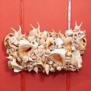 Claire Begheyn (1950), wandsculptuur opgebouwd uit vele soorten schelpen, 2024, 55 × 84 × 30 cm, met bijbehorende transportkist -volgrecht van toepassing-