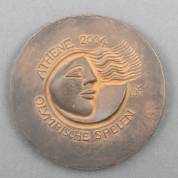 Christl Seth-Höfner (1933), 'Athene Olympische Spelen 2004', inschrijfpenning, 2004, Vereniging voor Penningkunst, brons, Ø 9,8 cm