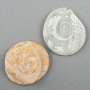 Lina Hodoroaba (1963), twee natuurstenen legpenningen met diverse gesneden en gekraste decors, Ø 7 cm en Ø 6,5 cm