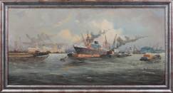 Ari Verveen (1912-1988), havengezicht Rotterdam, olieverf op doek, r.o. gesigneerd, 40 × 80 cm