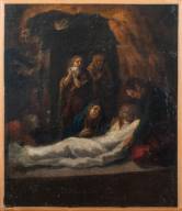 Schilderij: graflegging van Christus, olieverf op doek, niet gesigneerd, 18e/19e eeuw -inschilderingen, krassen, gedoubleerd-, 36 × 31 cm