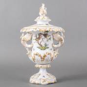 Porseleinen potpourri dekselpot met decor 'Rothschild' en handvatten in de vorm zwanen, uitvoering Herend, Hongarije, hoogte 36 cm