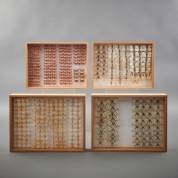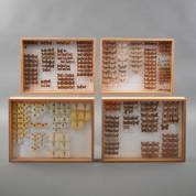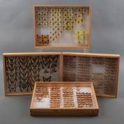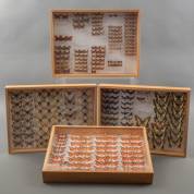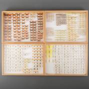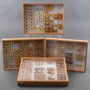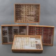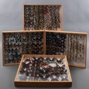 Vier dozen met geprepareerde vlinders, waaronder: Thecla betulae, Satyrium acaciae, en Nyctemerinae, 40 × 30 × 5 cm