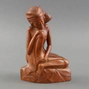 Balinees houten beeld: zittende man met opgetrokken knie, midden 20e eeuw -beginnende krimpscheurtjes, enkele kleine defecten-, 22 × 14,5 × 9,5 cm