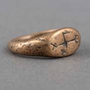 Bodemvondst: bronzen zegelring met vier (Griekse?) letters, mt. 20, herkomst: privécollectie oud-directeur Museum Kam, Nijmegen