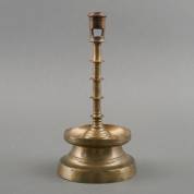 Messing knoopkandelaar, Zuidelijke Nederlanden, eind 15e/begin 16e eeuw -bobèche vermoedelijk afkomstig van andere kandelaar, kleine restauratie in druppelvanger-, 26 × Ø 13,5 cm