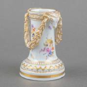 Klein porseleinen vaasje met polychroom bloemdecor, rammascarons en vergulding, uitvoering Meissen, 8,2 × Ø 5,7 cm