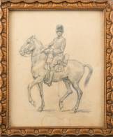 Toegeschreven aan Willem Staring (1847-1916), gele rijder te paard, potlood op papier, niet gesigneerd -vochtplekje m.o.-, 22 × 18 cm