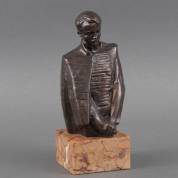Bronzen beeld: buste van Mikhail Lermontov (1814-1841) in militair uniform, hij was een Russische schrijver en dichter, gepatineerd brons, niet gesigneerd, op marmeren basement, hoogte 23 cm inclusief basement