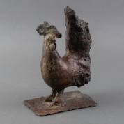 Bronzen beeld: haan, onduidelijk gemonogrammeerd op voet: AM of Amy?, 24 × 16 × 11 cm