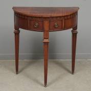 Mahonie halvemaantafeltje met drie lades, tandlijst en staande op gecanneleerde poten, Louis Seize -gebruikssporen-, 73 × 67 × 38,5 cm