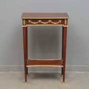 Mahonie bijzettafeltje met vergulde messing monturen, etage en lade op de korte kant, Louis Seize-stijl, 78,5 × 42,5 × 37 cm