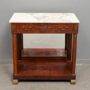 Mahonie trumeau met wit marmeren blad, lade en spiegelachterwand, directoire, 82,5 × 82 × 41,5 cm
