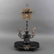 Gezwart houten crucifix, met 2e gehalte zilveren monturen en Corpus Christi, waaronder slang met appel en twee engelen, meesterteken onduidelijk, Hollands, 19e eeuw -defecten-, 70 × 38 × 22 cm