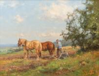Jan Holtrop (1917-1995), 'Ploegpaarden Groesbeek', olieverf op doek, r.o. gesigneerd, verso gedateerd 1969, 35 × 45 cm
