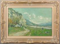 Belgische School: landschap langs de Maas, olieverf op doek, r.o. gesigneerd H. Verly, 50 × 75 cm