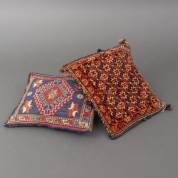 Twee kleine kussentjes: Perzisch Kaskay, eind 19e eeuw, en Kaukasisch, grootste 27 × 24 cm