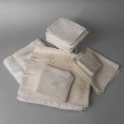 Diverse damasten tafellakens en servetten met diverse patronen, enkele voorzien van geborduurd monogram