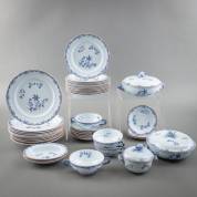 Aardewerk serviesgedeelte, decor 'Ostindia', uitvoering Rörstrand, Zweden, 20e eeuw, bestaande uit: elf dinerborden (24,5 cm), twaalf ontbijtborden (21 cm), twee bedekte terrines, kleine bedekte terrine, vier soepkommen en zes schotels, twee ovale schaaltjes, en drie losse schotels, terrine Ø 18,5 cm