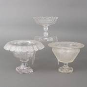 Drie diverse kristallen schalen op voet, 19e eeuw -enkele randschilfers en chips-, grootste 21,5 × Ø 25 cm