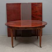 Ovale mahonie schuiftafel met gecanneleerde poten, inclusief drie diverse tussenbladen van later datum, Louis Seize, 76 × 145 × 119 cm
