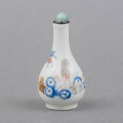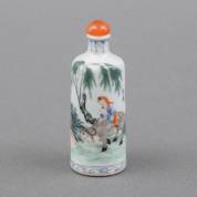 Chinees porseleinen famille rose snuiffles met decor van een lezende figuur op de rug van een os en tekst -verticale haarlijn in buik-, 19e eeuw, hoogte 9 cm