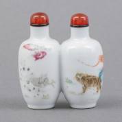 Chinees porseleinen famille rose dubbele snuiffles met decor van de twaalf dieren uit de dierenriem, gemerkt, 19e eeuw -slijtage aan decor-, hoogte 6 cm