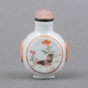 Chinees porseleinen snuiffles met ronde medaillons en kippendecor, de zijdes roodgemarmerd, Guangxu gemerkt en periode, hoogte 7 cm