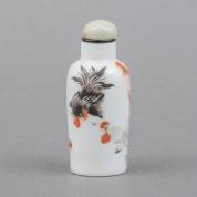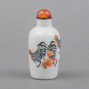 Chinees porseleinen snuiffles met polychroom hanendecor, Guangxu gemerkt en periode -decor licht sleets, schilfertjes van onderrand, dopje zit los-, hoogte 7,3 cm