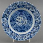 Chinees porseleinen bord met blauw-wit bloemdecor, met artemisiablad gemerkt, Kangxi -enkele randschilfers-, Ø 24,5 cm