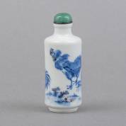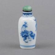 Chinees porseleinen snuiffles met blauw-wit hanendecor, Kangxi gemerkt, 19e eeuw, hoogte 8 cm