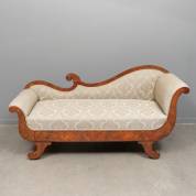 Mahoniegefineerde canapé, de damasten bekleding met bladerdecor, biedermeier, 85 × 174 × 63 cm