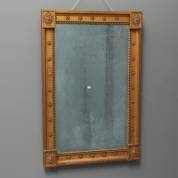 Rechthoekige spiegel in vergulde lijst met parelrand en rozetten, 19e eeuw -glas wazig-, 91 × 60 cm