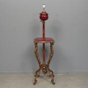 Gietijzeren en rood porseleinen petroleumlamp met étagèregedeelte, geëlektrificeerd, 19e eeuw -defecten, fitting wat los-, 148 × 38 cm