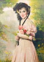 Charles Joseph Watelet (1867-1954), dame met hoed en rozen, olieverf op doek, l.o. gesigneerd en gedateerd 1941, 110 × 90 cm