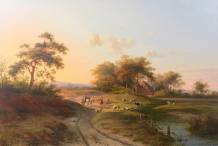 Bernardus Gerardus ten Berge (1825-1875), zonnig landschap met dieren, olieverf op doek, gesigneerd en gedateerd 1860 -gedoubleerd, minieme inschildering-, 65 × 95 cm