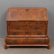 Wortelnoten secretaire met schuingeplaatste klep en gebogen onderkast, 18e eeuw, 106,5 × 126 × 61 cm