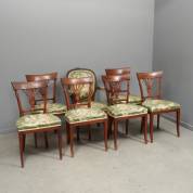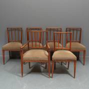 Zes iepen stoelen, waarvan één armstoel, circa 1800