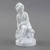 Biscuit beeld, zittend meisje, gesigneerd Falconet, hoogte 22 cm