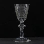 Kristallen glas met knoop en luchtbel in de stam, de gegraveerde kelk met twee gekroonde monogrammen, 18e eeuw, 16 × Ø 8 cm