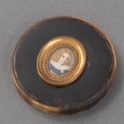 Hoornen dekseltje met ovaal miniatuurportretje: Napoleon II, ofwel de Koning van Rome, 19e eeuw -chips van deksel-, Ø 6,5 cm