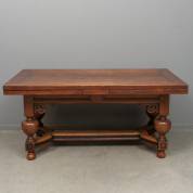 Eiken bolpoottafel met groot uitschuifbaar blad, het onderstel met ebben details, Hollandse renaissance, eerste helft 17e eeuw, 82 × 172 × 87 cm