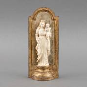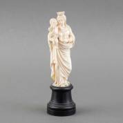 Olifantsivoren beeld: Madonna met Kind, Dieppe, Frankrijk, 19e eeuw, op gezwart houten basementje -CITES EU-certificaat bijgevoegd, geen uitvoer buiten de EU-, hoogte 14,5 cm