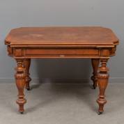 Eiken speeltafel met vier uitklappende fichebakjes op de hoeken te bedienen met knopje, circa 1900 -mechaniek ietwat stroef, fineerschades-, 77 × 111 × 74 cm