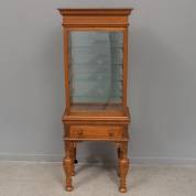 Eiken vitrinekastje met gefacetteerde ruitjes en bolpoten, tevens voorzien van lade, Hollandse renaissance-stijl, 20e eeuw -houten lipje ontbreekt- 145 × 53 × 33 cm