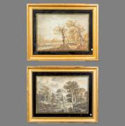 Twee aquarellen: de hertenjacht, niet gesigneerd, circa 1800 -vlekjes-, 37 × 53 cm