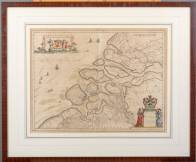 Ingekleurde kaart van Zeeland: 'Zeelandia Comitatus', door Willem en Joan Blaeu, Amsterdam, 1640 -wat vergeeld-, 40 × 50 cm, herkomst: Prentenkabinet Paulus Swaen, Geldrop